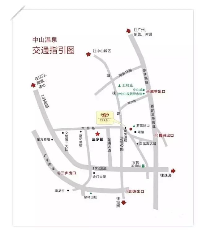 ◆ 珠海:西部沿海高速S32(中山方向)—到月环互通交通—转广珠西线高速S43(中山三乡方向)—三乡出口—右转再左转直行500米右转—泉林山庄