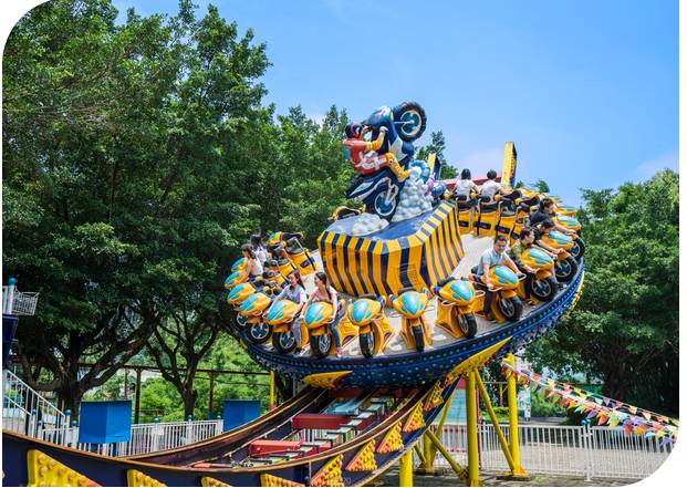 含(1、过山车、2、旋转迪士高、3、疯狂飞椅、4、浪漫咖啡杯、5、豪华转马、6、爬山车、7、林中飞鼠、8、梦幻一号、9、逍遥水母、10、时代船艇、11、太空之旅、12、豪华海盗船、13、跟踪追击、14、花果山漂流、15、箭场)