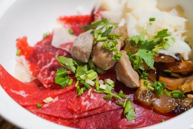 和牛以及牛小排的分量都很壕气!生肉被热腾腾的高汤烫熟,口感非常嫩滑~两人吃这一份都能饱啦!