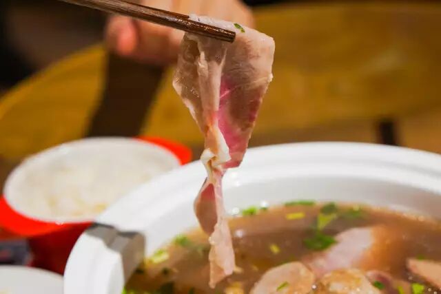 服务员现场为大家浇上热气腾腾的汤底!小编暗访大厨后才知道,这看似清澈的汤底来得可不容易: