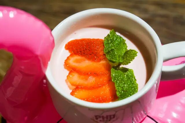 这份椰香浓郁的甜品也是满满的少女心~椰汁+椰肉,混合草莓打造了颜值不一般的粉红椰子冻!草莓也是新鲜选取~低糖分!低卡路里!吃货们安心!