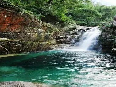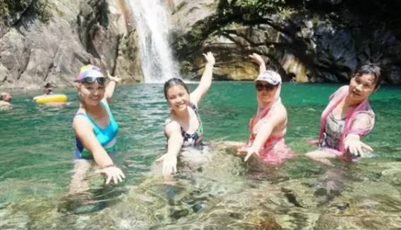 看见这块大石头了吗?这个水潭的周围,有很多这样的巨石哦,就像是天然的休闲平台,皮皮建议你的新玩法:在夕阳西下的时候,您可以自带户外茶具,和好友家人几个,盘坐石上,一边闲聊一边品茶,看碧水奇石,才是度假的节奏。