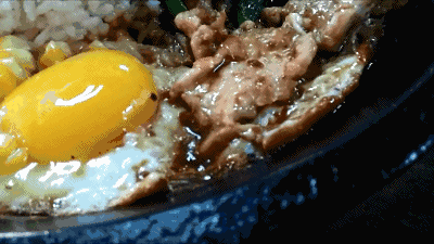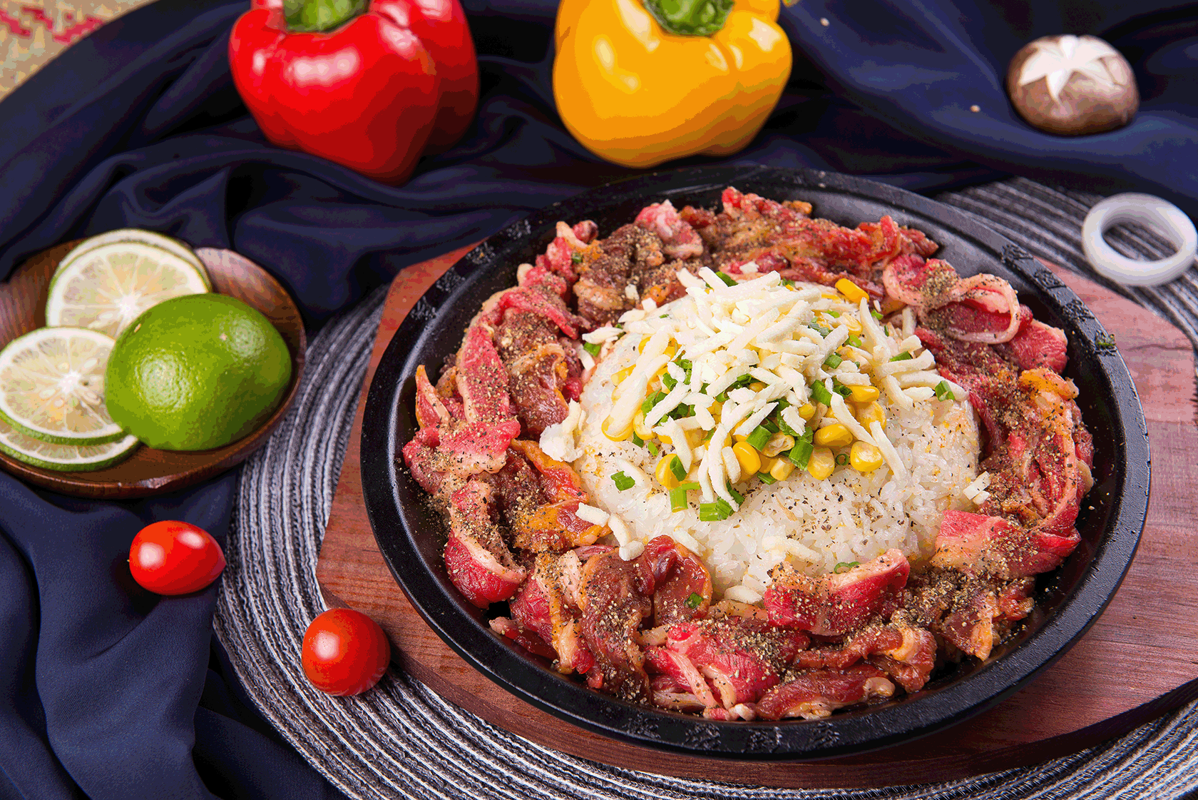 铁板的温度将牛肉的香味最大程度地激发出来,融着咖喱的香气,滑嫩的牛肉,糯香的米饭,配上融化的芝士条,小编我都禁不住舔屏!