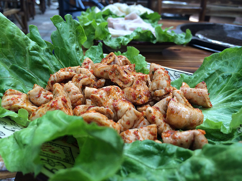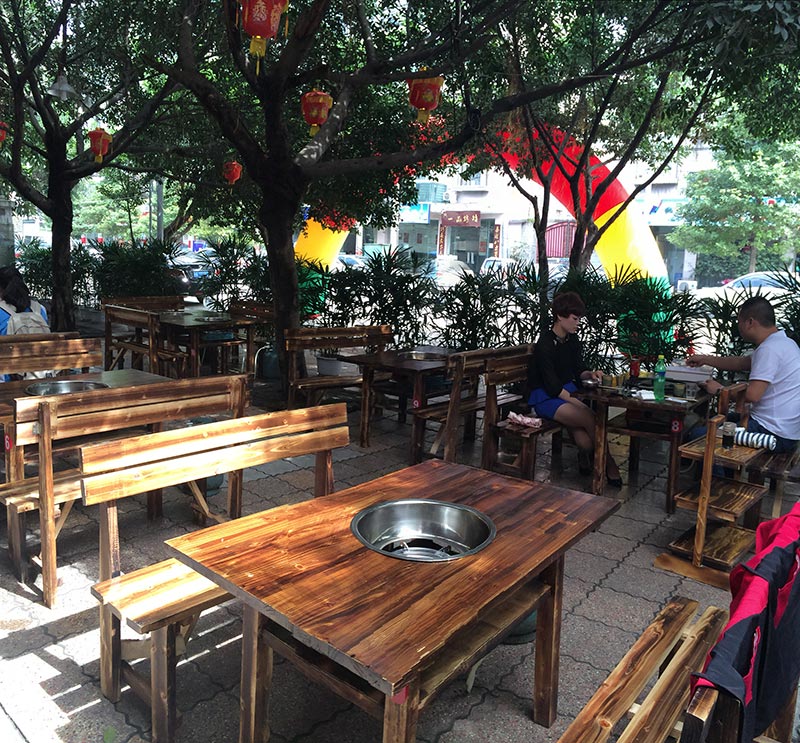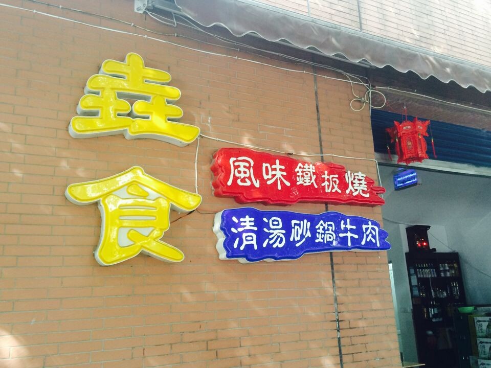 先来张环境。有室内和露天,但大部分人都会选择坐在坝坝头。老板做了防风板遮挡,不会有穿堂风过。再者,铁板烧和火锅一样,吃了身上难免会留下余味,坐在露天身上的味道全都消散在风中。晚上灯一开,还多有情调的。