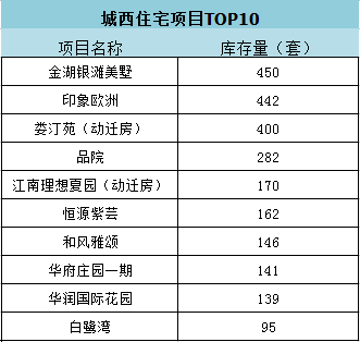 以改善型住宅为主的城西,库存紧缺状况相比城东要稍微好一些,不过也不是很大。适合刚需族的刚需型住宅印象欧洲和品院(品院包含少量别墅房源)目前存量相对较大,其余如恒源紫芸、华润国际花园和白鹭湾的库存余量,对改善型需求者来说量还是稍显不足。