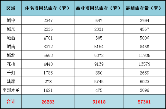 注:以上表格数字中,住宅项目存量为总存量减去商业性房源存量,实际包含了普通商品房、动迁房、别墅等房源