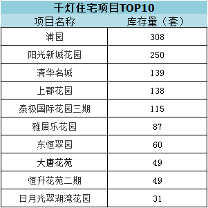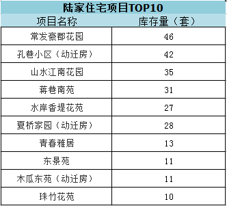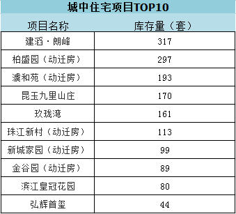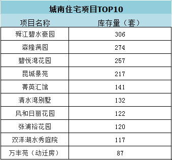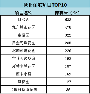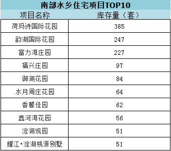 一直畅销的韵湖国际花园、富力湾、水月周庄库存量在此表中一看也不是很多。