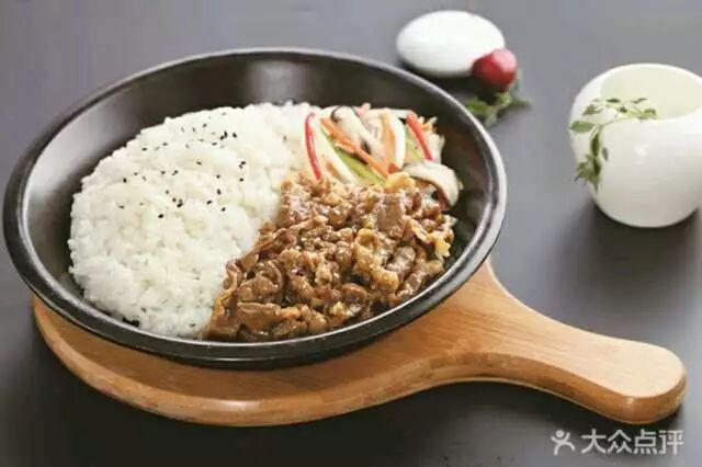 这家餐厅吃饭的方式十分特别,桌子中间有一个圆形的盘子,中间一圈向铁板烧一样,旁边有一圈凹下去的水槽。边上累似于浅浅的火锅