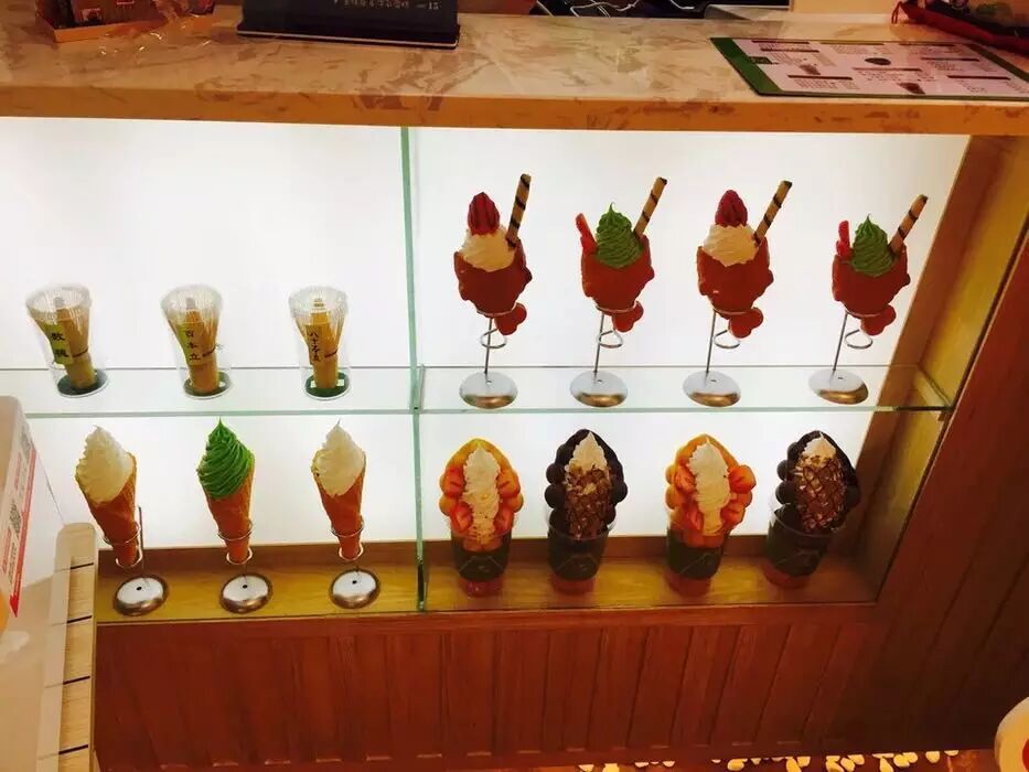小井招聘鲷鱼烧:他们家的冰淇淋实在太多啦,各式各样的口味,有金抹茶芭菲杯、原味蛋仔牛乳霜淇淋....当然最有特色的还是小井招聘鲷鱼烧啦,主推产品,看着样子就已经爱不释手了,何况吃到嘴巴里面的感觉呢。