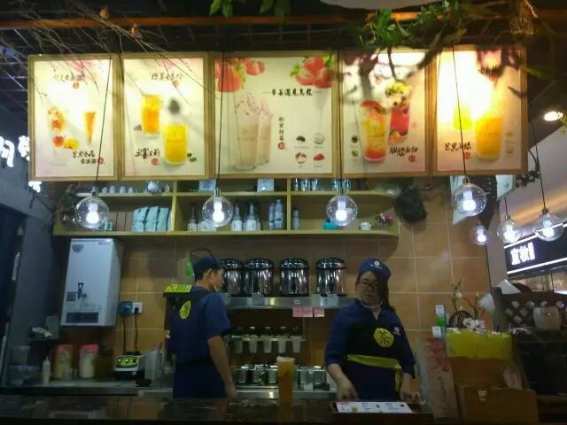 这是一家主打鲜榨果汁的店,进门就能看到各种新鲜水果等待被榨汁,对于一个妹子来说,是一杯喝完没有罪恶感的水果茶,清新的茶底+新鲜纯果肉,拒绝果酱拒绝添加剂;开放透明的厨房,干净新鲜看得见。