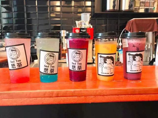 一家很个性的饮品店名,悲茶,口号是口是心非,一口一悲。他们家的最大特色就是他们家的新品名称了,总共分为五大类,EX过得更好系列,梦想都是泡系列,乳酸就想喝点什么系列,茶里缺点什么的水果茶系列,以及脸黑茶系列。