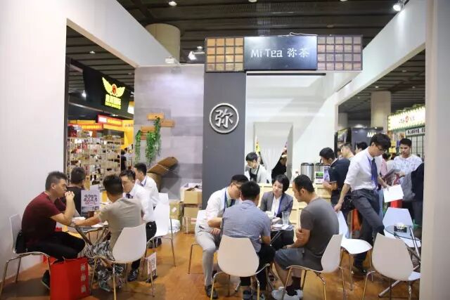 展会第一天,弥茶展位前人流渐渐开始聚集