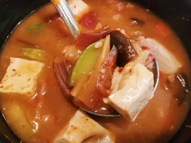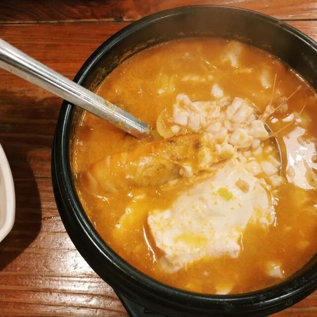 豆腐实在太嫩了,入口即化的口感。酱汤的咸淡适中,附赠了一碗米饭,可以将汤淋在饭上,很是开胃。还有挺多海鲜,如大虾、贝类、鱼肉等,都充分吸收了汤汁,味蕾包裹着香甜的味道。