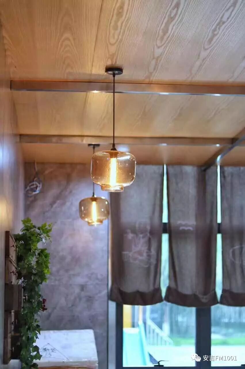 暖黄色的玻璃吊灯,