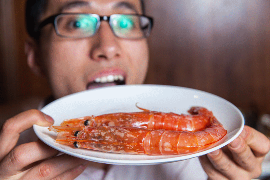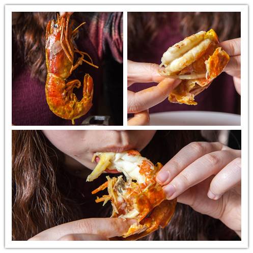 南法大虾的虾肉像龙虾肉一样我会说?!白嫩的肉质和鲜红的纹路,矮油~吃嘴里很Q弹,沾上咖喱酱之后完全将虾肉的美味给吊出来了!prefect~