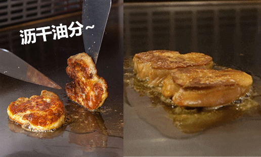 来吃法式的铁板烧,第一个自然想到最具代表性的法式鹅肝了!鹅肝的厚度都要达到每层0.8cm左右,在一阵香煎之后,撒上黑胡椒、盐,蘸上面粉,来个华丽丽的大转身,把油沥干装盘~一个完美的心形鹅肝@。@