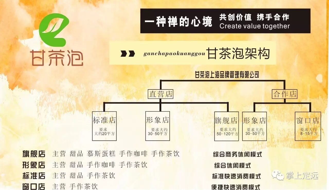 甘茶泡是一家以甜品,咖啡,茶饮,鲜果系列为一体的复合式专营店,健康时尚,清新自然,甜美的形象设计,呈现出简单,舒适的视觉感受。以健康鲜制为首要目的。甘茶泡改变的不止是一种观念,更是一种茶文化的进步。
