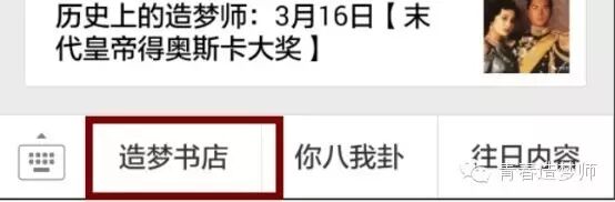 如下图所示,点击首页下方中红色方框里的“造梦书店”,可直达微店。