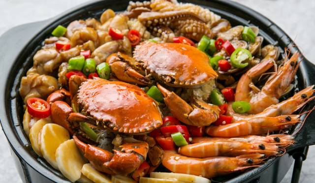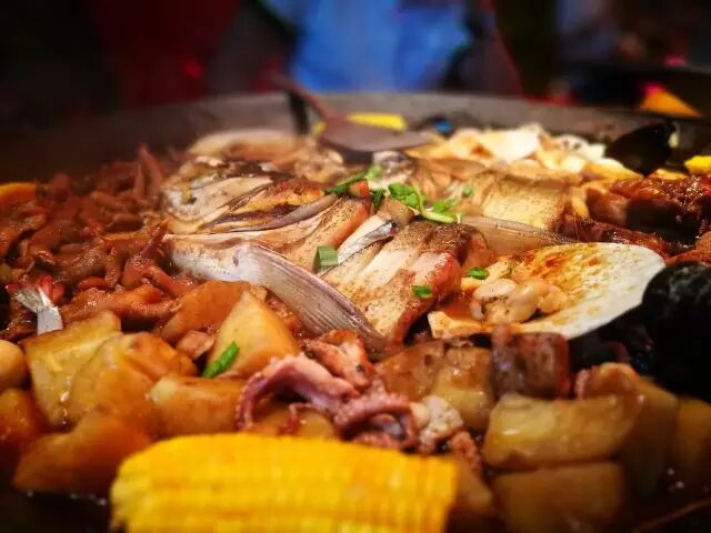一口大铁锅重达27斤,需要两个男服务员合力抬着才能上菜。富有蛋白质的肥鱼头带着“虾兵蟹将”和“飞禽走兽”一起来到至尊铁锅中!选择超丰富!