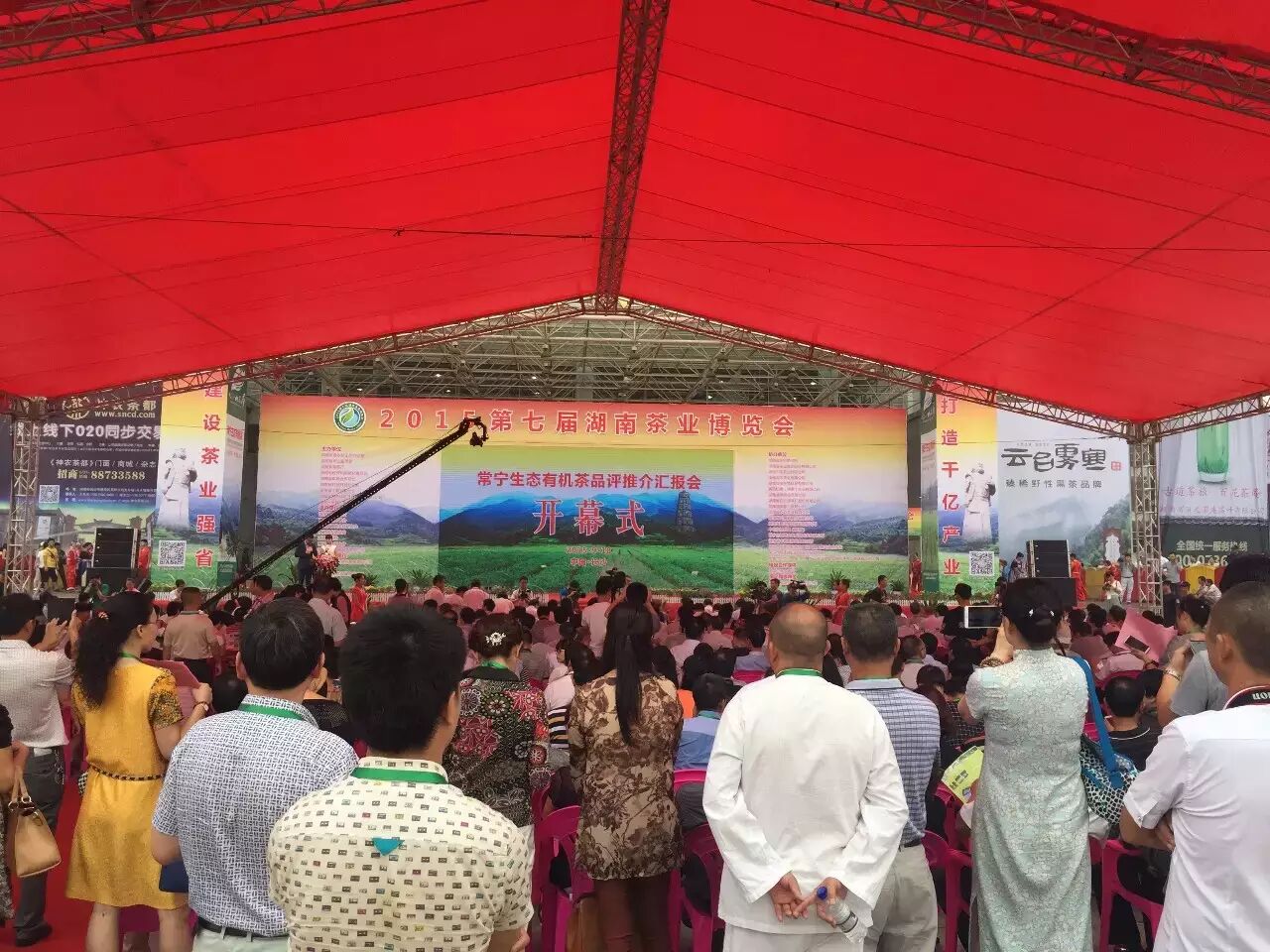 大茶视界长沙讯:2015年9月18日,湖南第七届茶业博览会于长沙红星国际会展中心盛大开幕,并同时举办了2015湖南茶叶'十佳示范乡镇'、'十大杰出制茶师'、'十强茶叶专业合作社",常宁“生态有机茶之乡”称号,以及2015湖南茶业博览会"茶祖神农杯名优茶”的颁奖授牌仪式,省人民政府副省长戴道晋、省政协副主席武吉海,省政协原主席刘夫生等领导皆出席了该次活动。