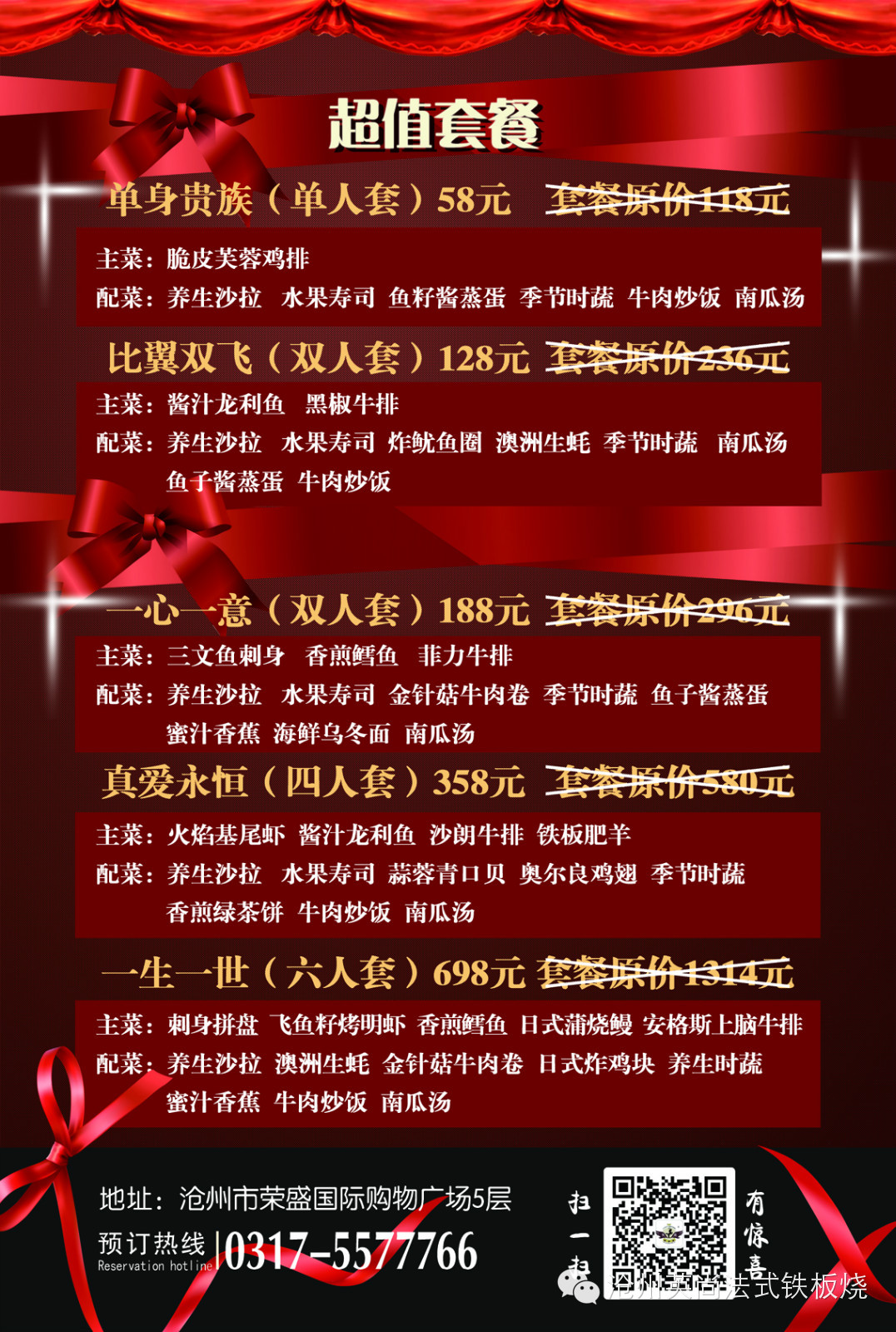 地址:荣盛购物广场五楼E区 英尚法式铁板烧