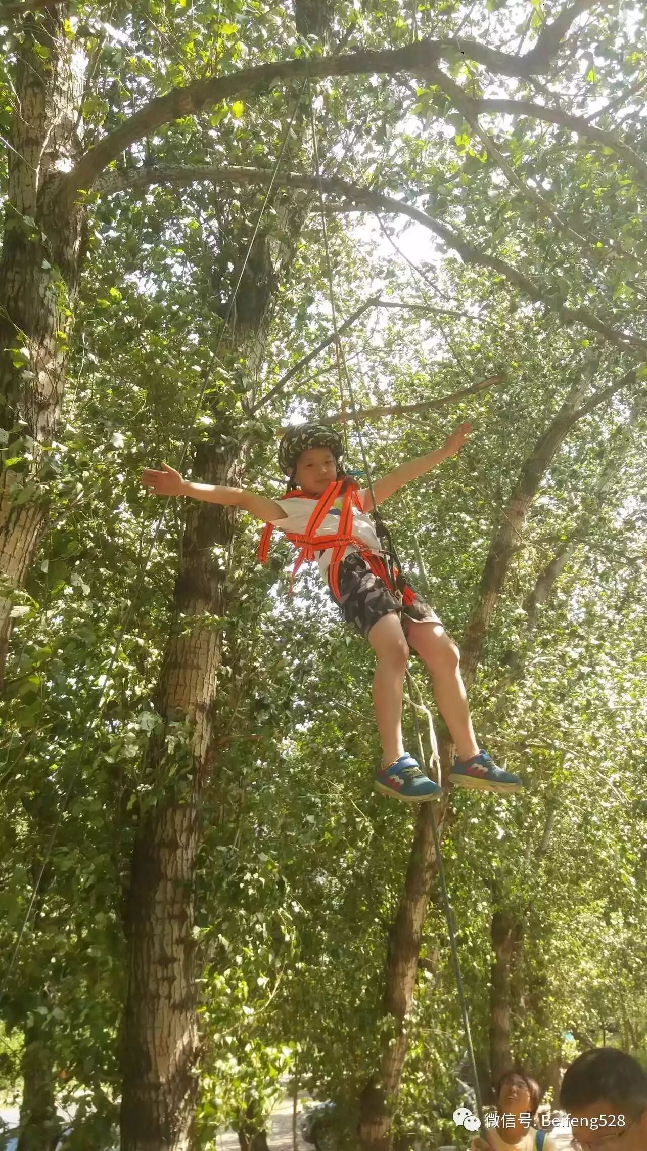 13:00——组织进行攀树基本介绍,教练示范,小朋友们利用路上学习的绳结由树下上升到树上,完成任务之后再由树顶返回。