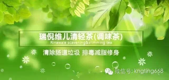 成份:乌龙茶、荷叶、决明子、薏苡仁、金银花、菊花、百合等成分经中医理论中的“君臣佐使”原则,科学配伍出是茶亦非茶,无药胜似药的瑞倪维儿“清轻茶”,可以发挥普通茶叶所没有的特殊功效。虽不含任何泻药成分,却可以起到普通泻药无法企及的作用。