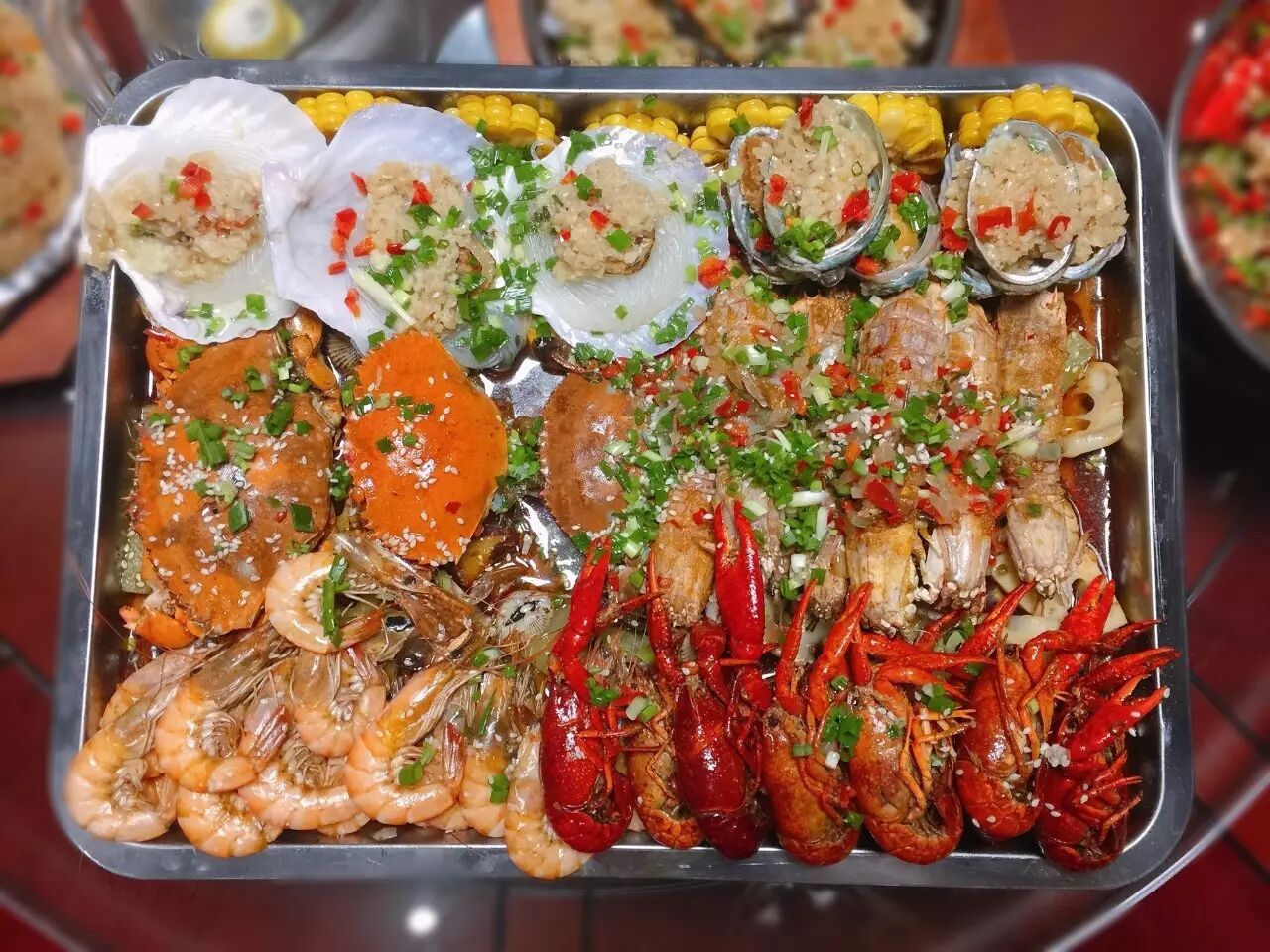 缅甸蟹、皮皮虾、鲍鱼、扇贝、基围虾、龙虾、花甲……