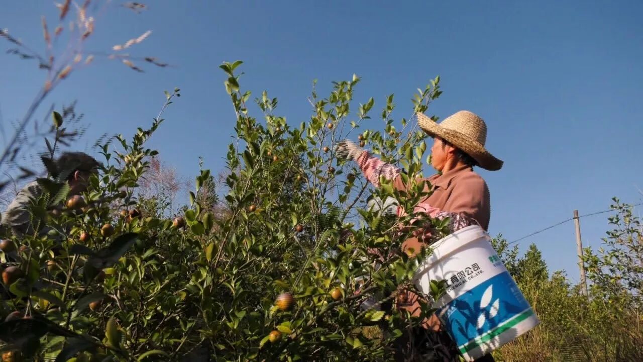 在长汀县馆前镇汀东村,一千多亩油茶树硕果累累,茶农们抢抓晴好天气,上山采摘油茶籽,个个脸上洋溢着丰收的喜悦。(长汀台 朱芳彬 叶婵 报道)