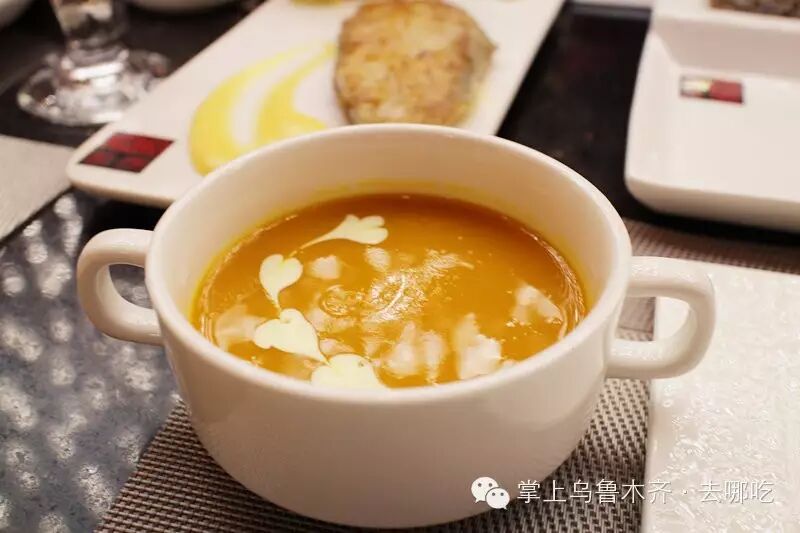 要不是觉得这颜色有点怪怪的,还以为是美式的拉花咖啡呢~这样造型的南瓜浓汤是不是多了一丝浪漫的小调调呢?