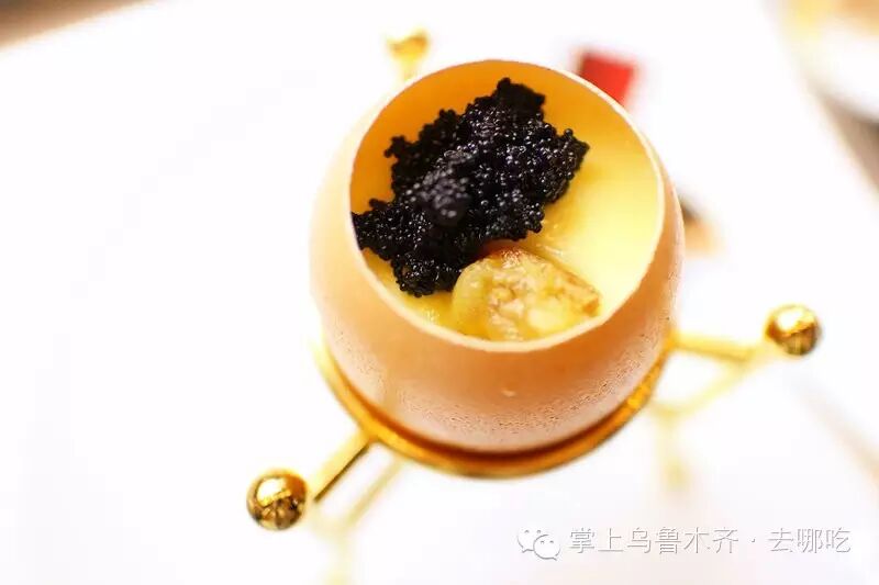 嫩黄如布丁的蒸蛋配上黝黑饱满的鱼子酱,是滑嫩与颗粒的碰撞,再来一小块入口即化的鹅肝,这道菜真的做到了口感上的极致。尤其这鱼子酱,在口中像是一个个小精灵淘气地游走在口腔的每一部位。