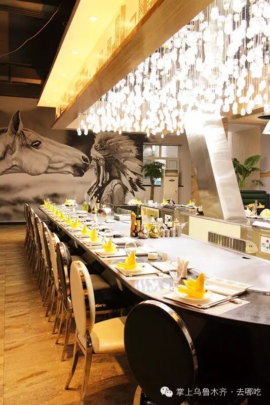 一走进雲聚汇铁板烧餐厅就被大厅超大的铁板烧台所震撼!这真的是乌鲁木齐最大的了,木有之一!