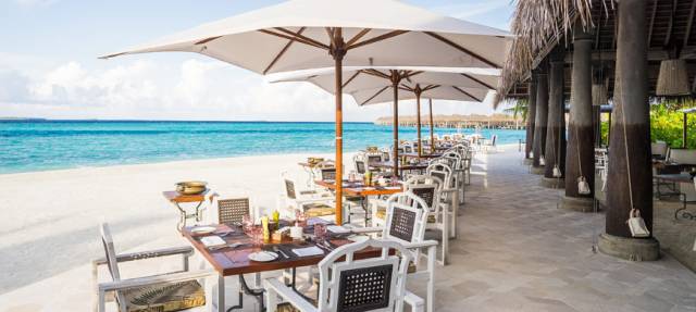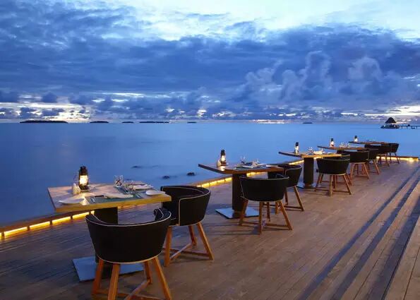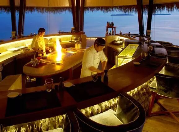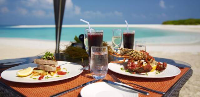 一边享用美食,一边看神仙鱼在蔚蓝海水中一闪游过。 劲爆美食和最新鲜的海鲜。 马尔代夫落日余晖映射在热带鸡尾酒杯中。 探索这座小岛的美食之旅,在水下、沙滩上或是在您的私密别墅中。