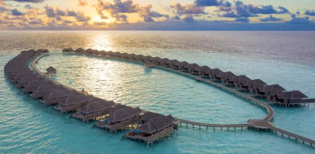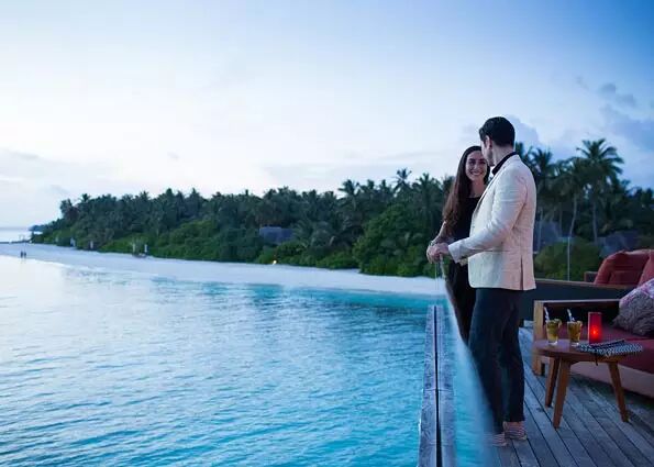 在水上别墅的宁静甲板上独自沉醉,在私人泳池中观赏动人的美景,感叹于马尔代夫天空中五彩斑斓的日落。