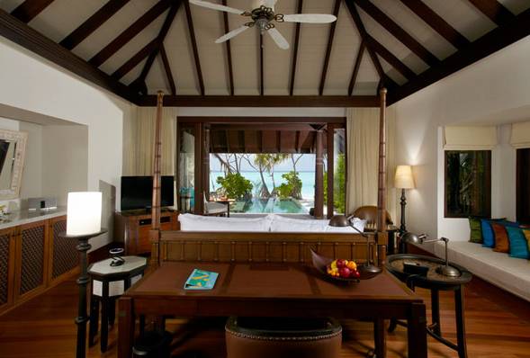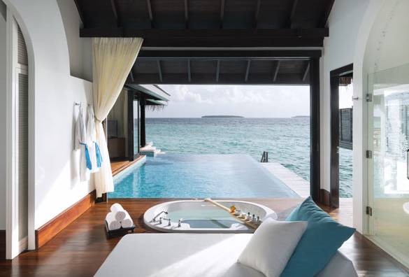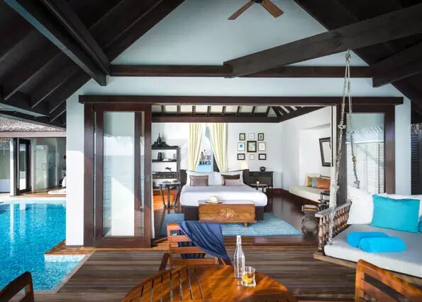 举目四顾,从私人日光甲板就能观赏泻湖中的海龟和印度洋上的海豚,或者从泳池中纵身一跃,直接融入印度洋诱人的海水之中。