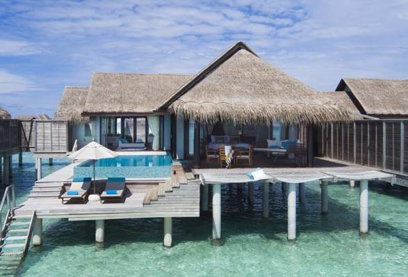 入住马尔代夫最热门的泳池别墅,感受水上生活的魅力,欣赏天空从蓝色渐次变为粉色、红色和深蓝色。
