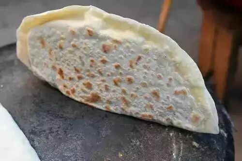 水烙馍比较“缺水”,吃起来有点干,喜欢吃辣的人还可以交代在里面涂些辣椒。