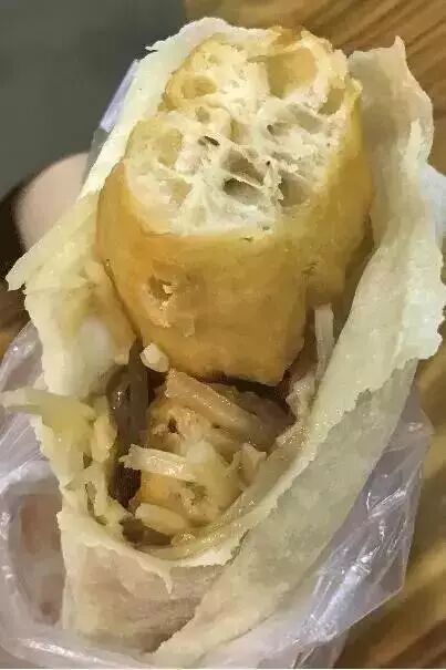 这家的油茶不知道是哪里的油茶,颜色偏浅一点,除了千张丝儿面筋还有黑木耳片,配上咸鸭蛋吃很过瘾。