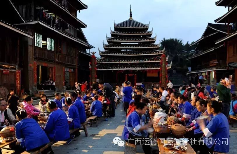 注明:可自费体验侗族待客的最高礼仪【百家宴】品尝侗族特色美食,喝转转酒,吃转转饭,吃百家饭纳百家福,侗族人们的热情一定让您流连忘。
