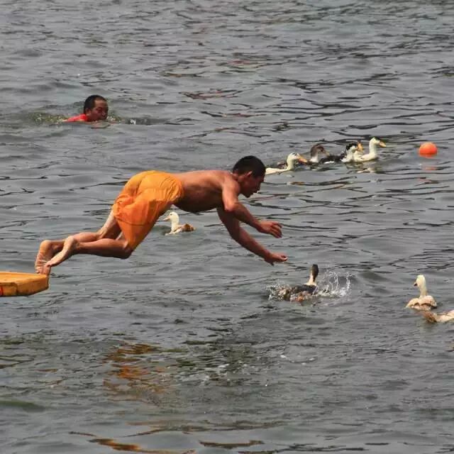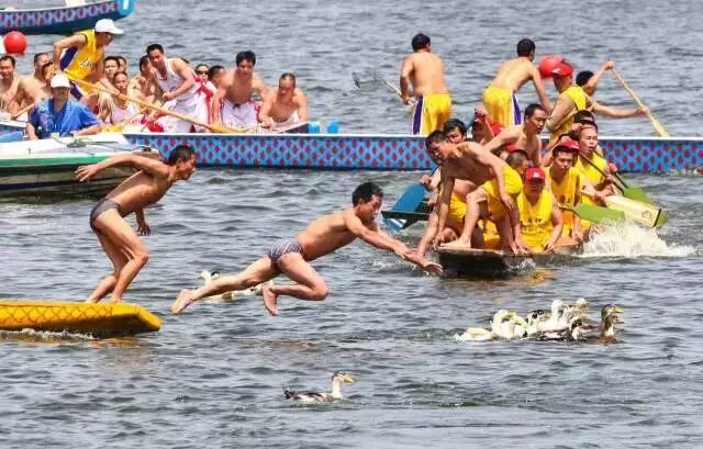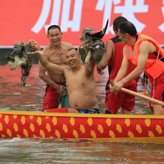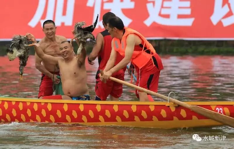 民俗活动搏浪擒鸭是津津最喜欢的环节,人鸭南河大战趣味十足笑点太多,引得岸边观众捧腹大笑,恨不得亲上战场。