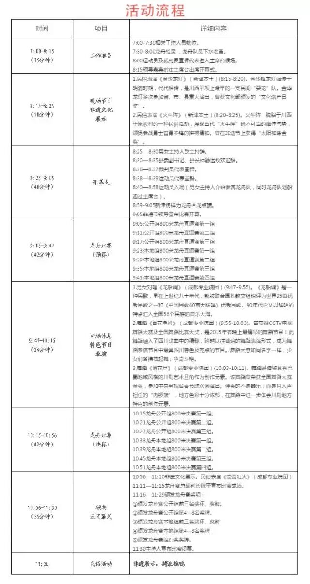 8:30开始的暖场表演是每年龙舟赛的看点之一,千万表错过。今年的暖场表演同样很新津,很精彩哟~