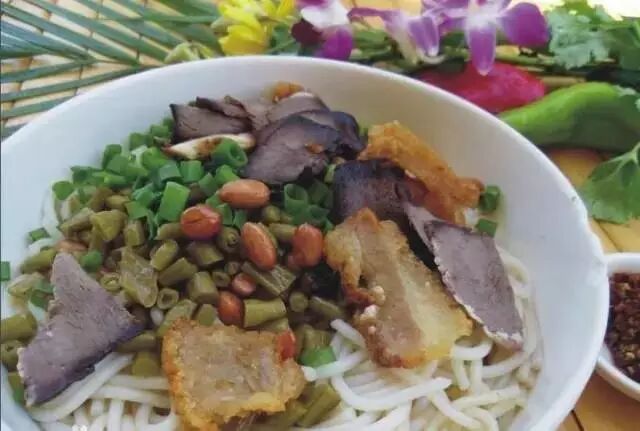 南宁蒲庙镇的传统小吃,以软、香、滑,还有与众不同的微酸而闻名,据说“吃生榨米粉就要吃这种馊味,才正宗。”