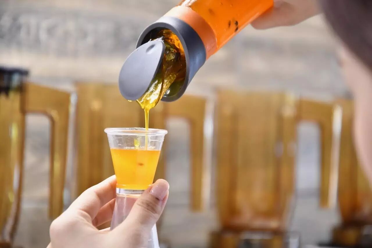 将萃取好的茶冷处理,将最好的口感锁在杯子里,然后加入百香果酱,杯底的颗粒就是百香果籽,在吃每一种水果的时候还能品到茶香,你还能忍住不来一杯的冲动吗?