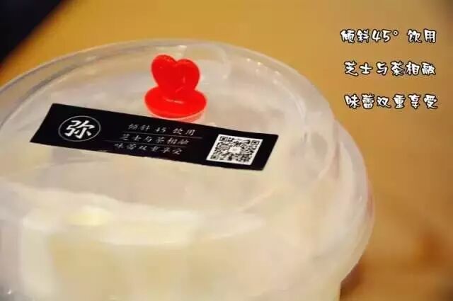 杯盖上还贴有饮用方法,倾斜45°,芝士与茶相融,味蕾双重享受的小贴士,好贴心的“网红”!