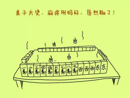 3、桌子太烫,麻将刚摆好,居然糊了。