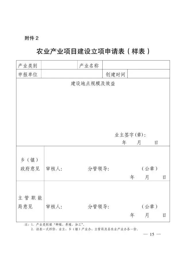 九、所有种植、养殖基地(项目)、农产品加工项目,必须实 行业主(农户)于当年6月底前先向当地乡(镇)人民政府和县有关 职能局产业办申报立项,获得立项批准并报县农业产业办备案方 可按产业发展规划要求进行建设(施工),未获得立项批准的,各 相关职能局产业办和县农业产业办不予项目验收和复查审核,经 各职能产业办验收合格后,报县农业产业办审查复核报县人民政 府审批后予以兑现奖励资金(凡年内建设项目,各乡镇产业办必 须在项目实施地进行为期不少于7天的项目公示)。