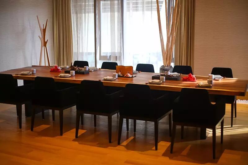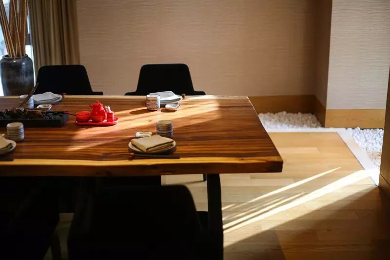 █这张原木长桌看着就非常雅致,衬托得日式铁板烧料理更加秀色可餐!小编后来才得知这张长桌价值约700000元!倒吸一口冷气……