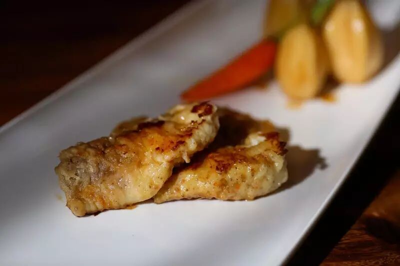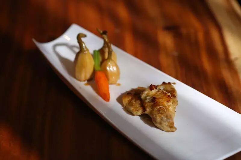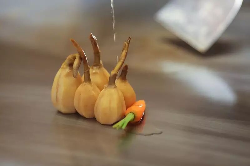 █煎到外皮金黄的虎头鱼和宝塔形的茨菇又是冬天里另一道不能错过的美食,要知道一块入口柔软的虎头鱼肉凝结着厨师的至深的用心啊。