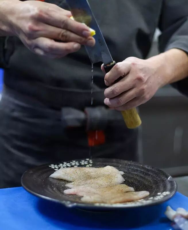 █都说日本料理要求色自然、味鲜美、形多样、器精良,因此料理前的准备工作尤为繁琐。雅日本餐厅的主厨顾兵拥有超过17年的日料烹饪经验,非常注重食材的新鲜度与季节性,他会定期到市场上了解时令食材,并坚持当天用料当天备的原则。