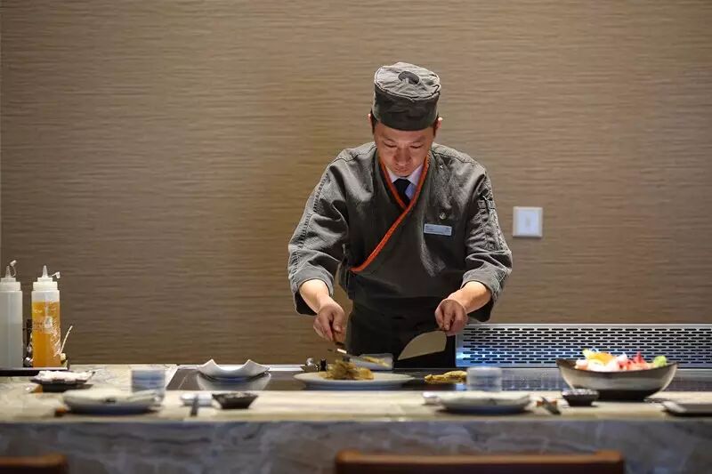 █雅日本餐厅提供的私人订制铁板烧每人888元,另需加收15%的服务费,确实价格不菲。不过,当萌萌哒小编推开豪华铁板烧包房大门的瞬间,立马转变了想法,这钱花得值啊!